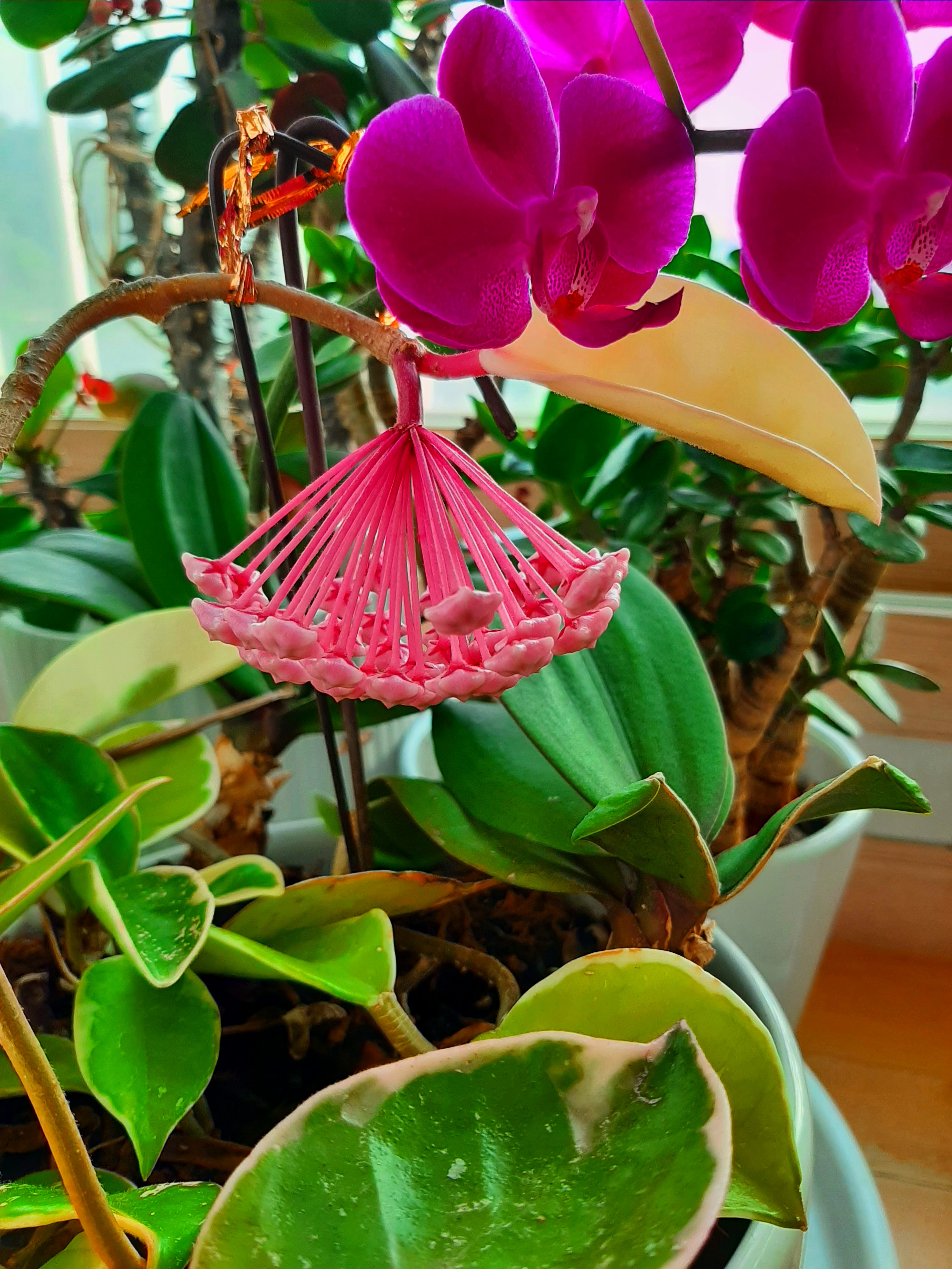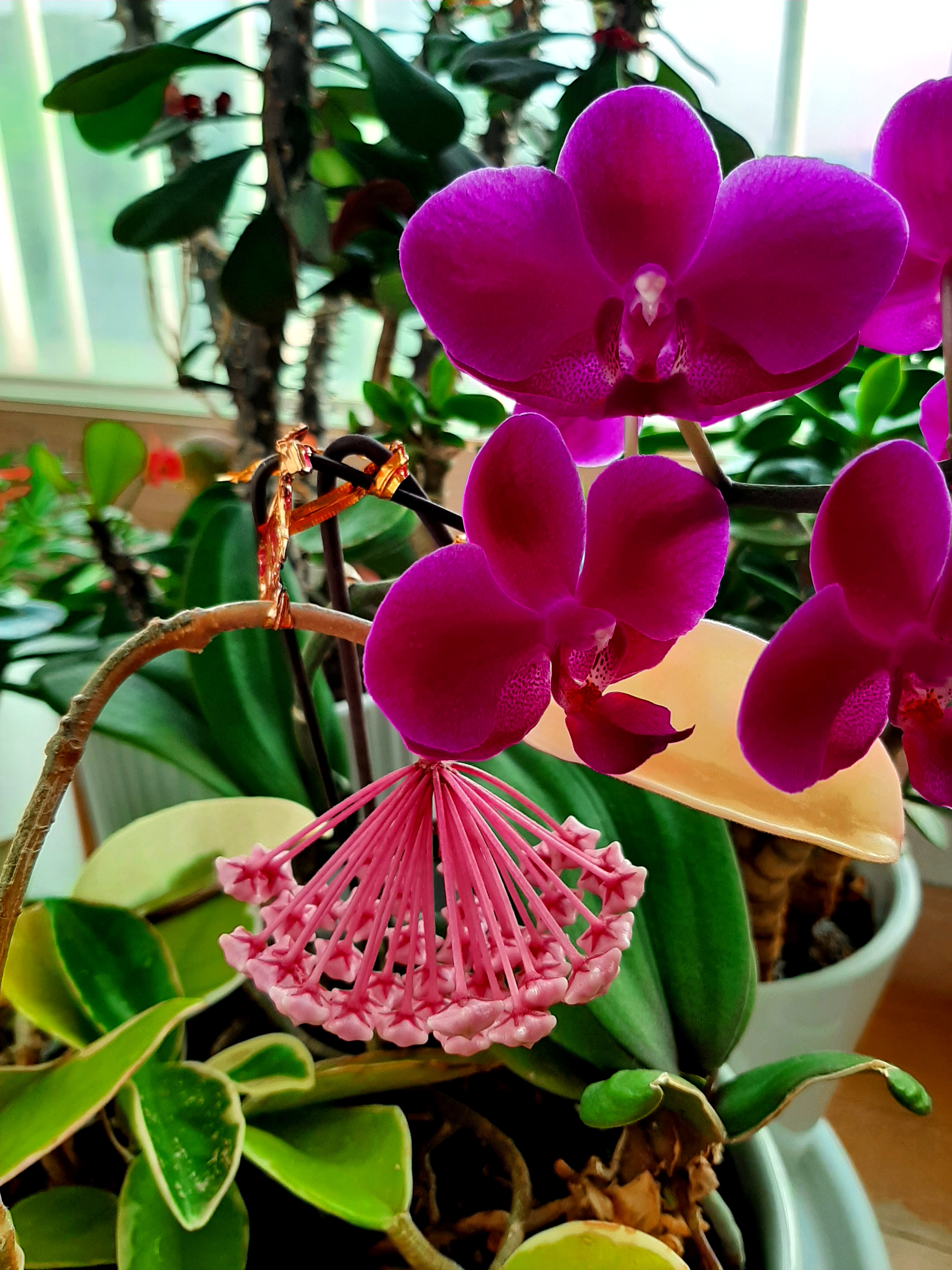 한 화분 속에서 호야와 호접란이 함께 서식하는데