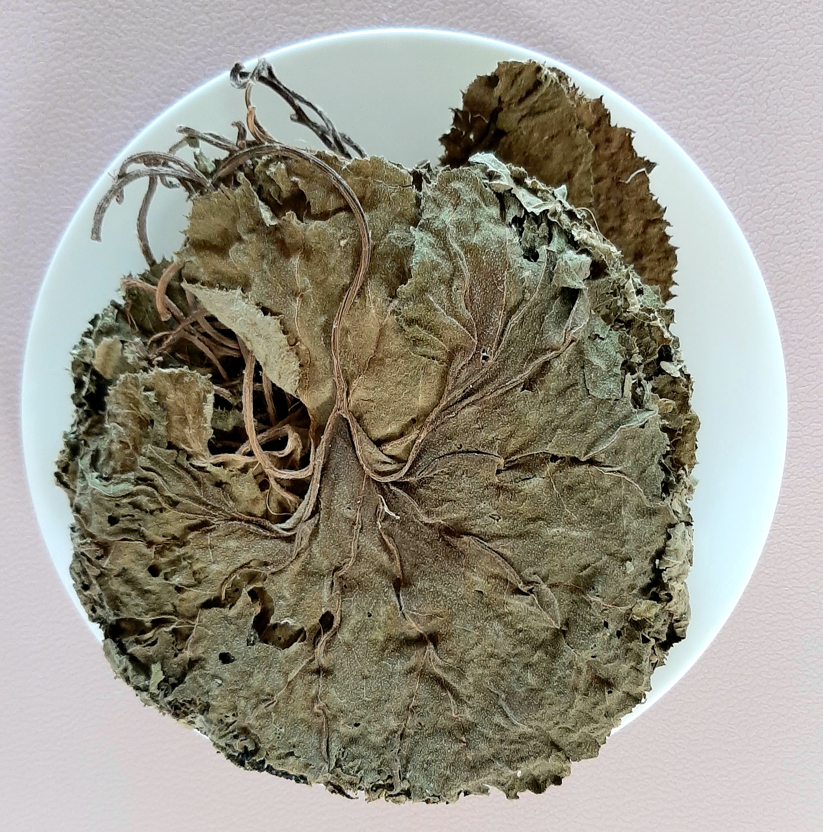 The mother collected the mulberry living on the hill next to the yard of her hometown, airlifted the completely dry mulberry leaves in the sun, boiled them in a small pot, washed them several times with cold water, placed on a cutting board, and cut them into small pieces,