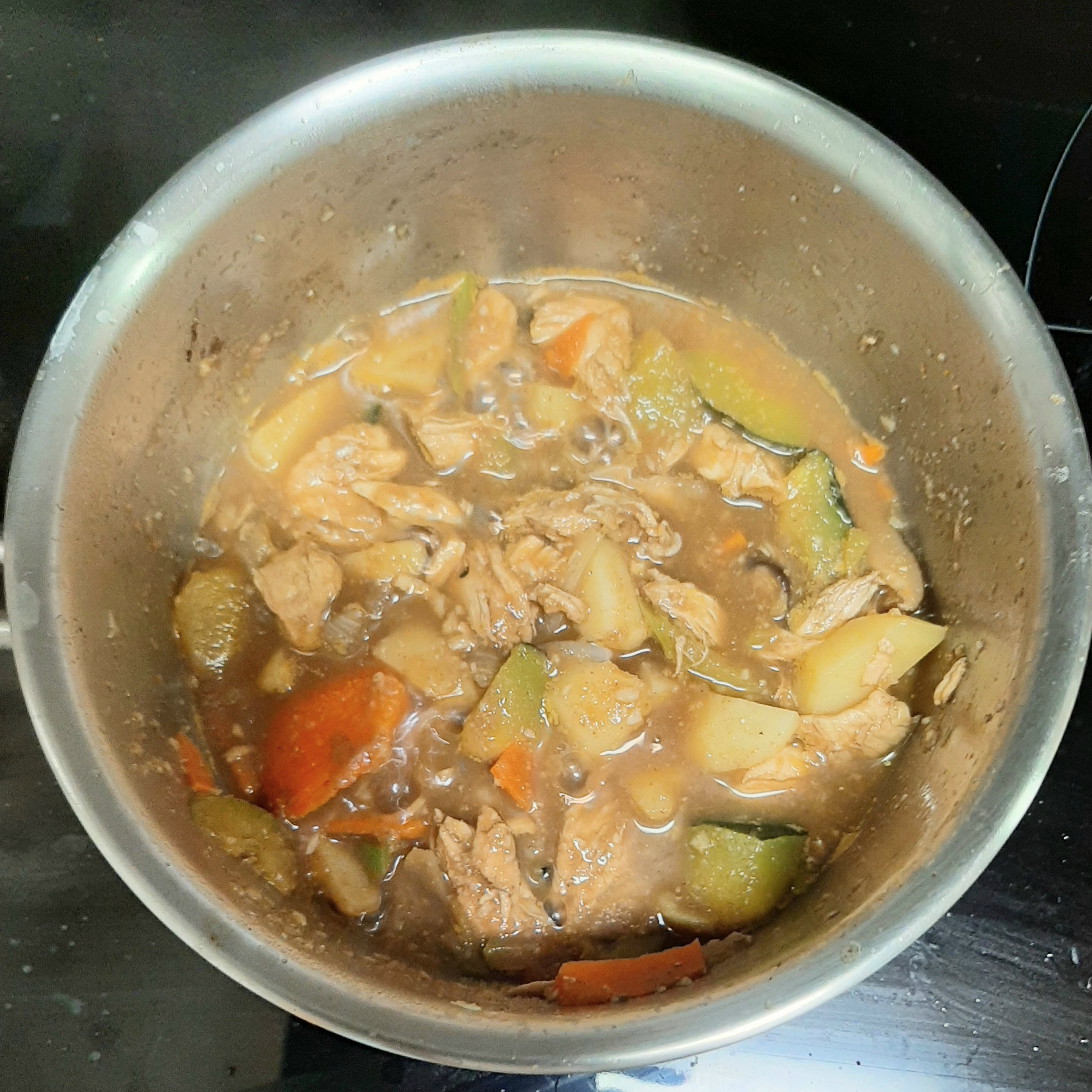 중요한 레시피로는 짜장분말, 닭가슴살,감자,당근,양파,오이,간마늘,맛술,매실엑기스,아카시아꿀, 물, 핵심적인 손맛으로부터 흘러 나오는 정성, 이 정도면 되죠.^^