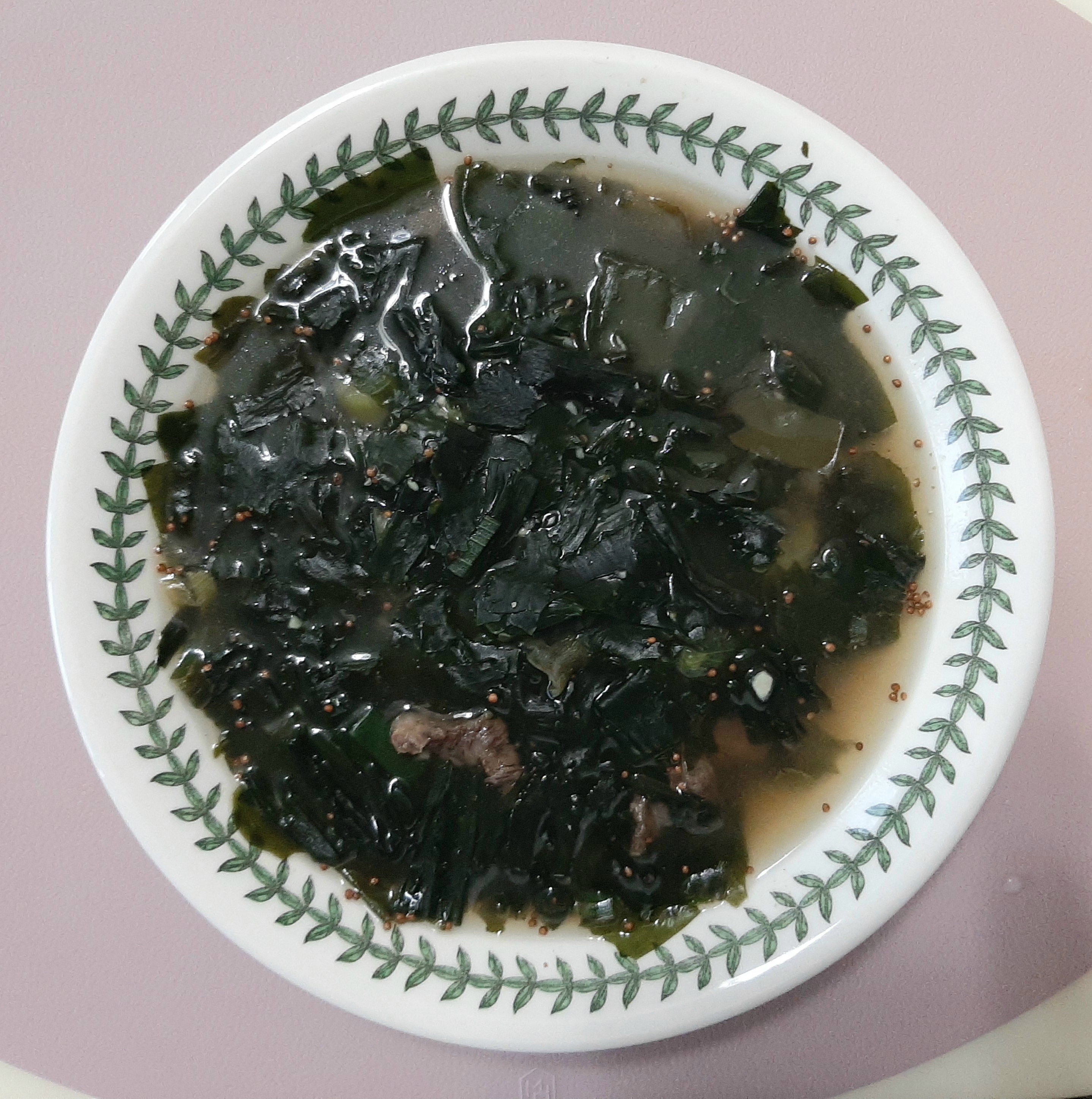 레시피로는 자른 미역, 쇠고기,국간장,간마늘,들깨,물,소금으로 간을 조절하면 끝.^^