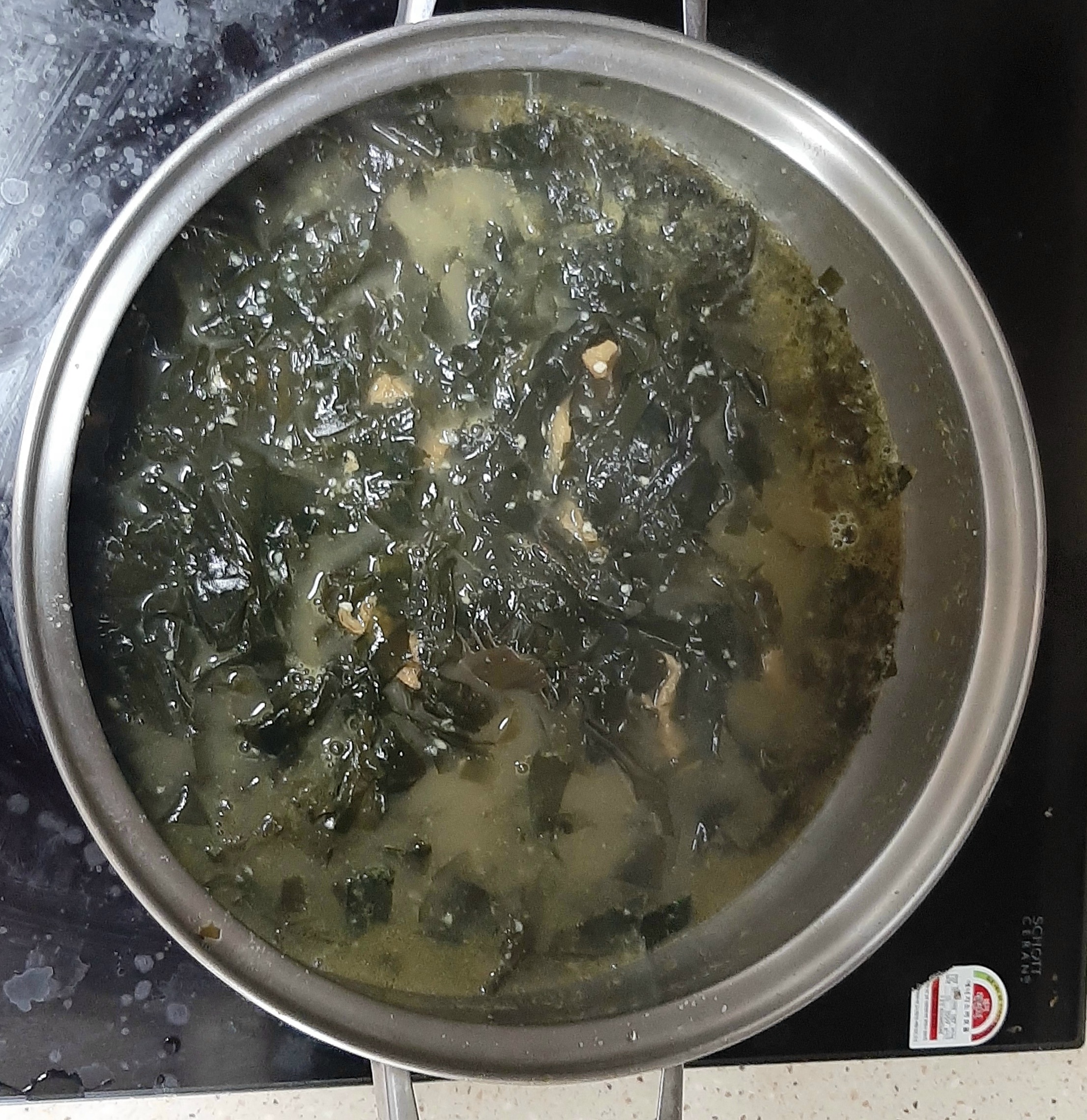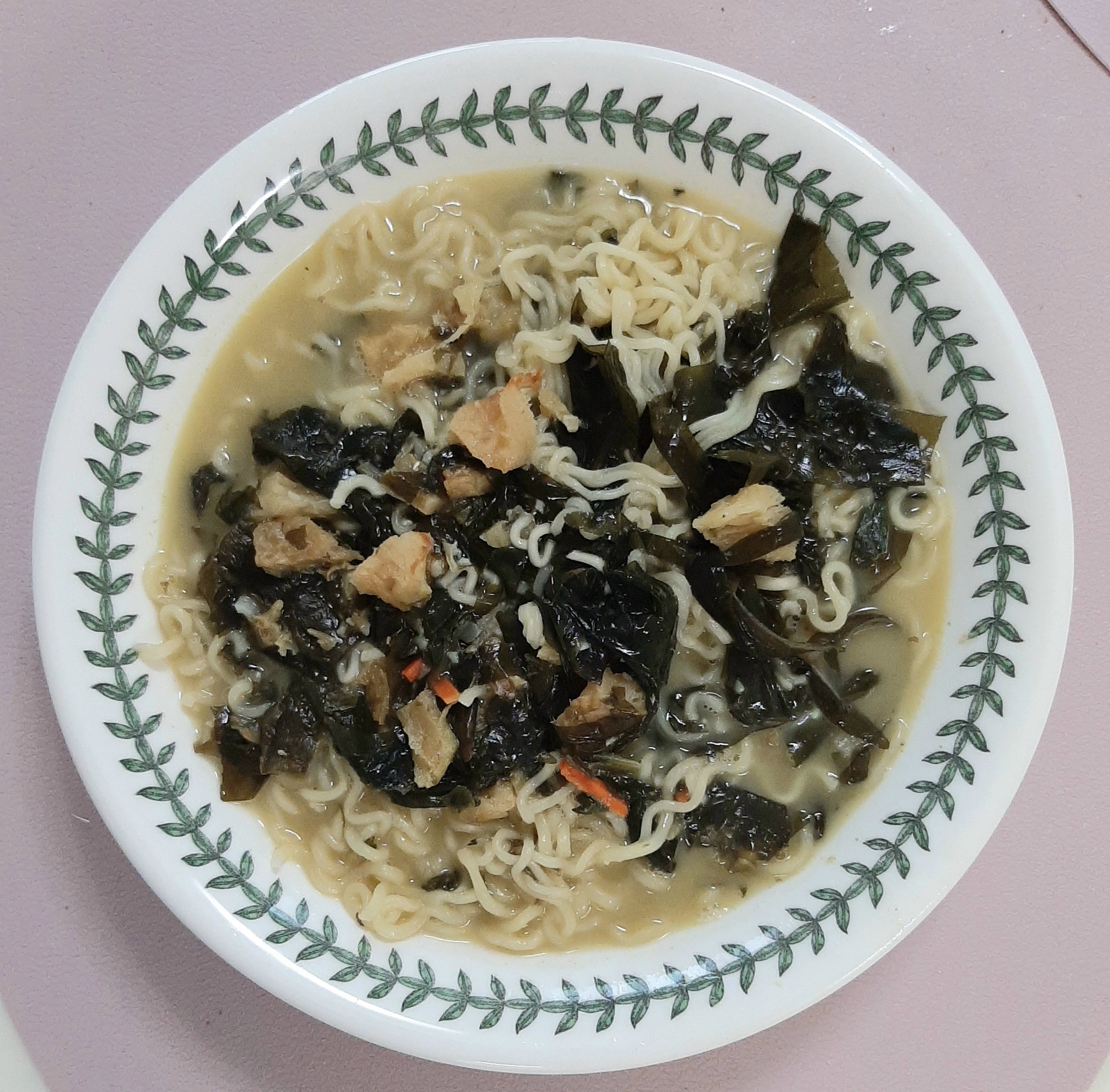 점심에 끓여 먹고 남은 황태미역국을 이용하여 별미(?) "황태미역라면(제213호)"으로 바꿔봤어요.^^