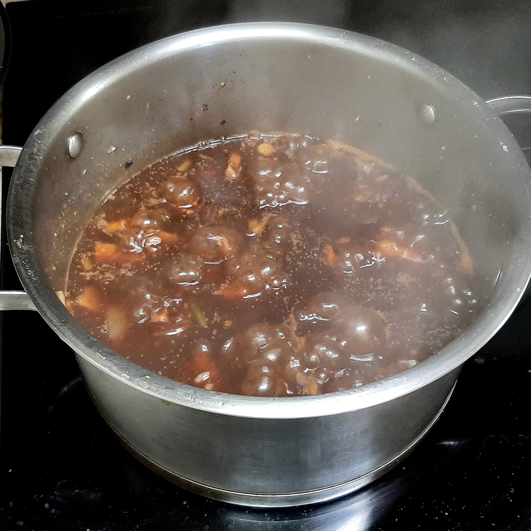 준비된 레시피에 짜장분말과 찰보리쌀밥. 물을 충분하게 넣고 끓이면