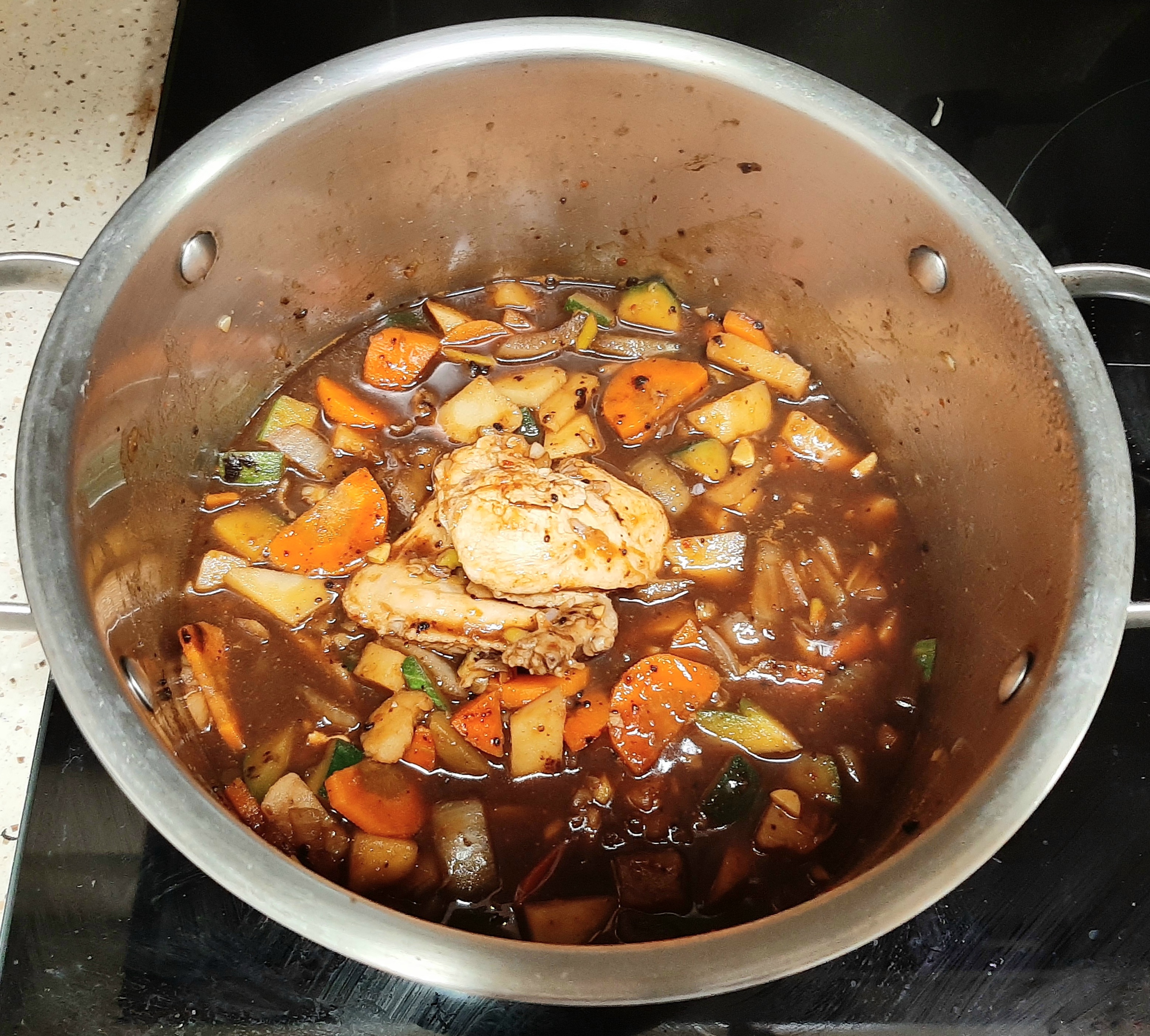 닭고기와 감자를 먼저 넣고 순차적으로 넣으면서 볶아요