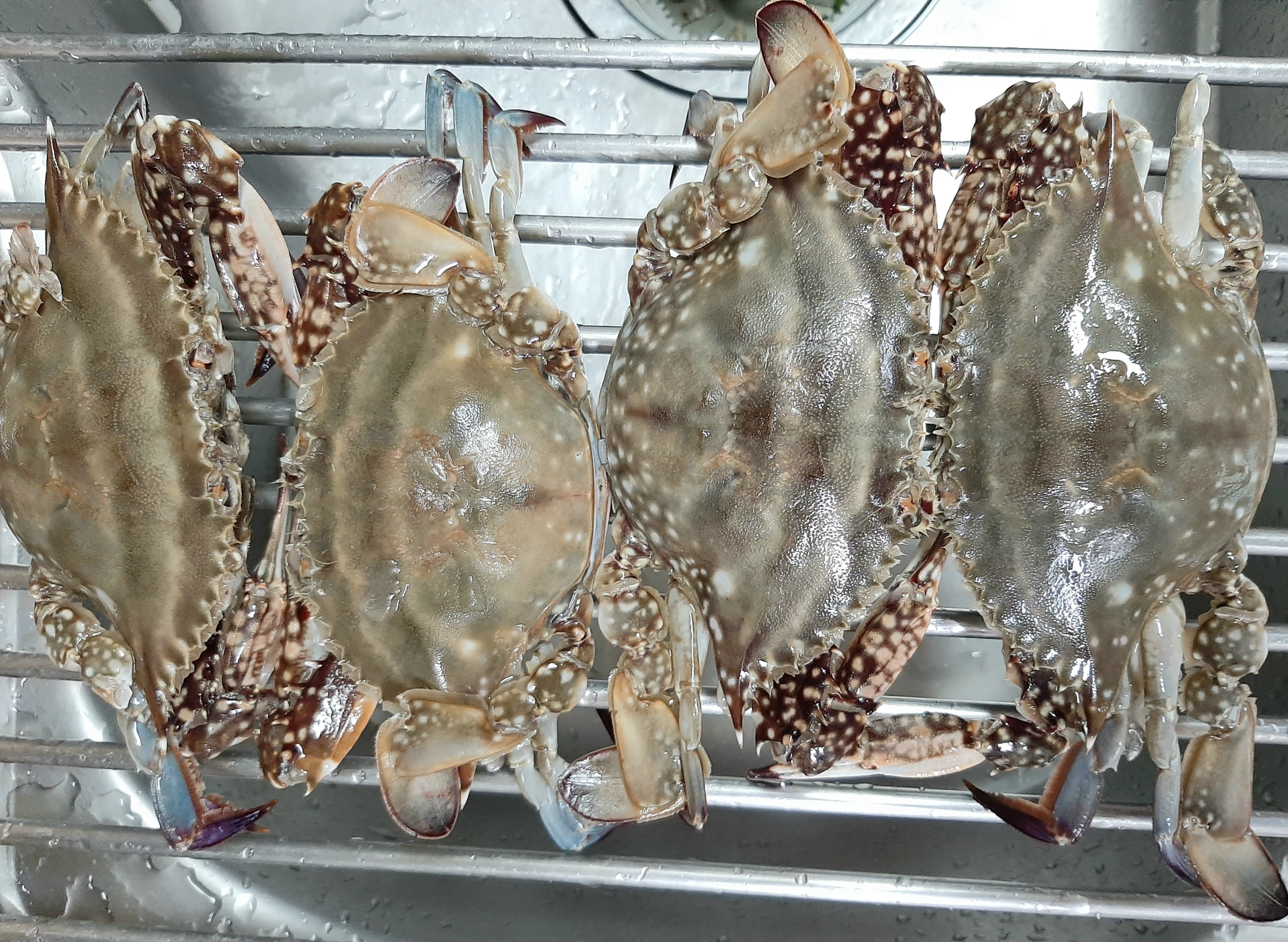 알이 찬 꽃게를 깨끗한 치솔을 사용하여 흐르는 물에 세척하고, 적당한 크기로 드시기 좋게 절단해요.