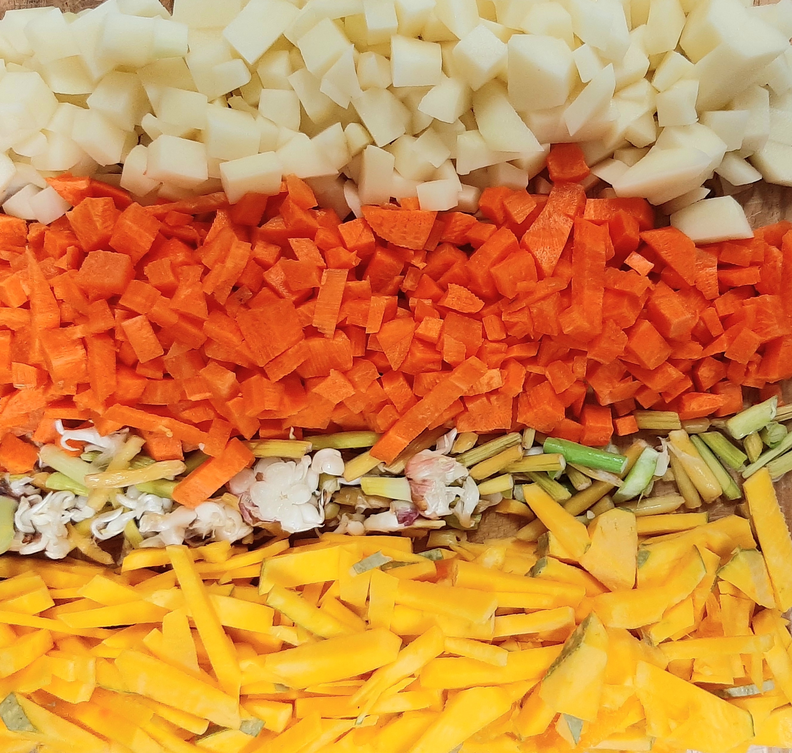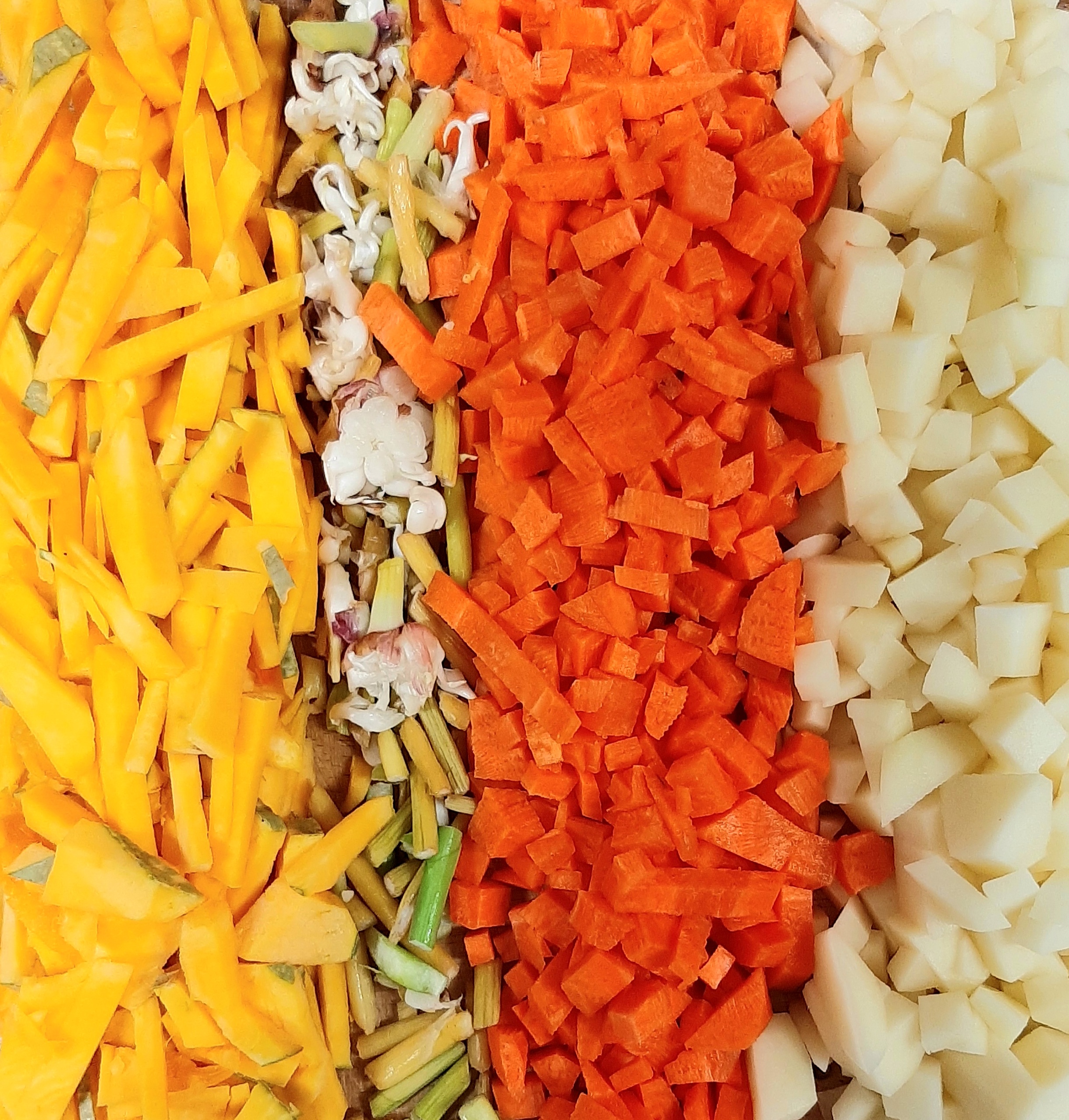 단호박,마늘쫑,당근,감자를 잘게 절단하고