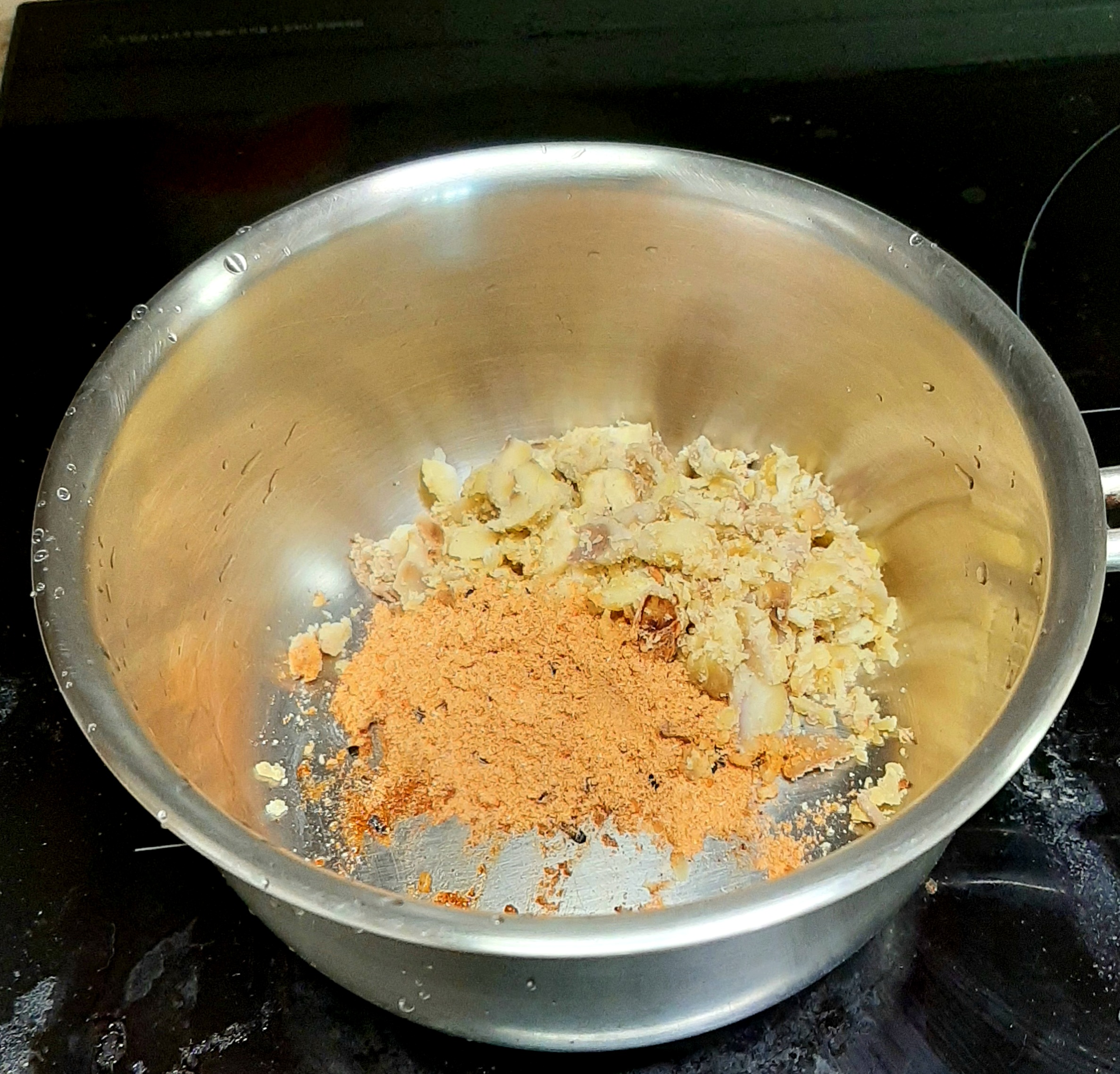 밤속살만을 파내어 보관했던 밤속살을 라면솥에 넣고...