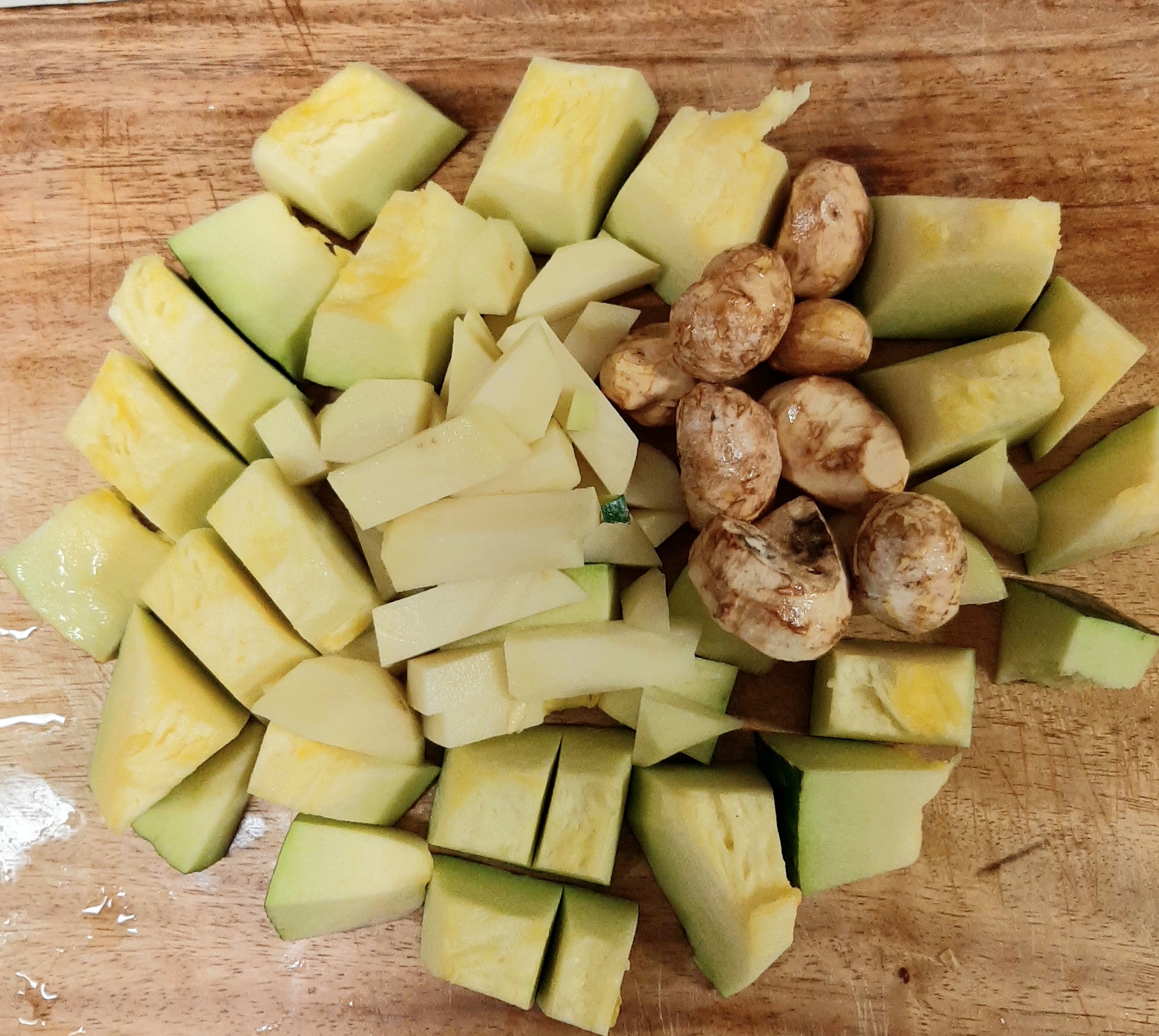 간단하게 사용한 레시피는 닭다리 하나, 감자,청호박,밤속살,간마늘,생강술,히말라야소금