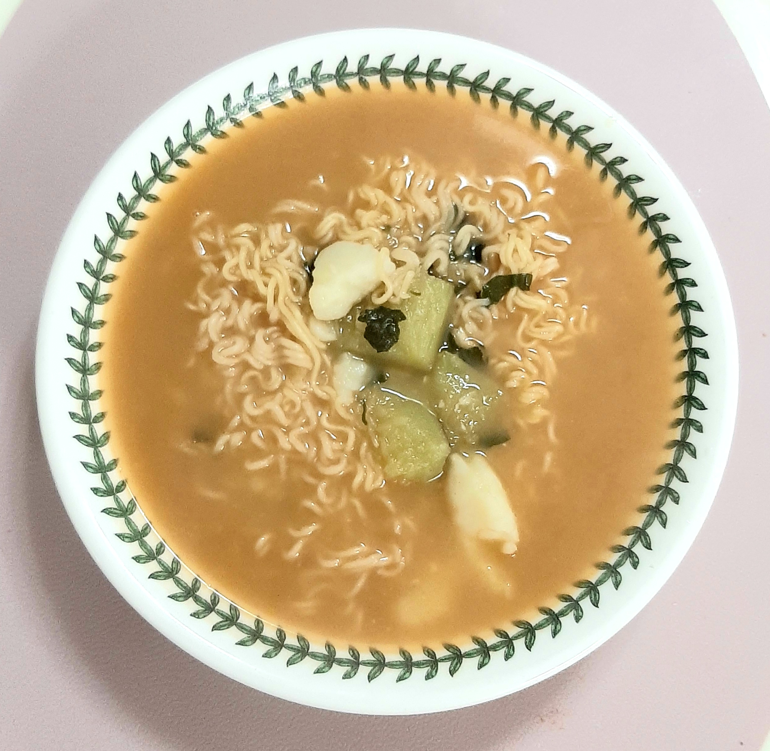 닭고기 인삼라면(제263호) 한 그릇 위에 중년호박과 감자를 올려서 드시면...