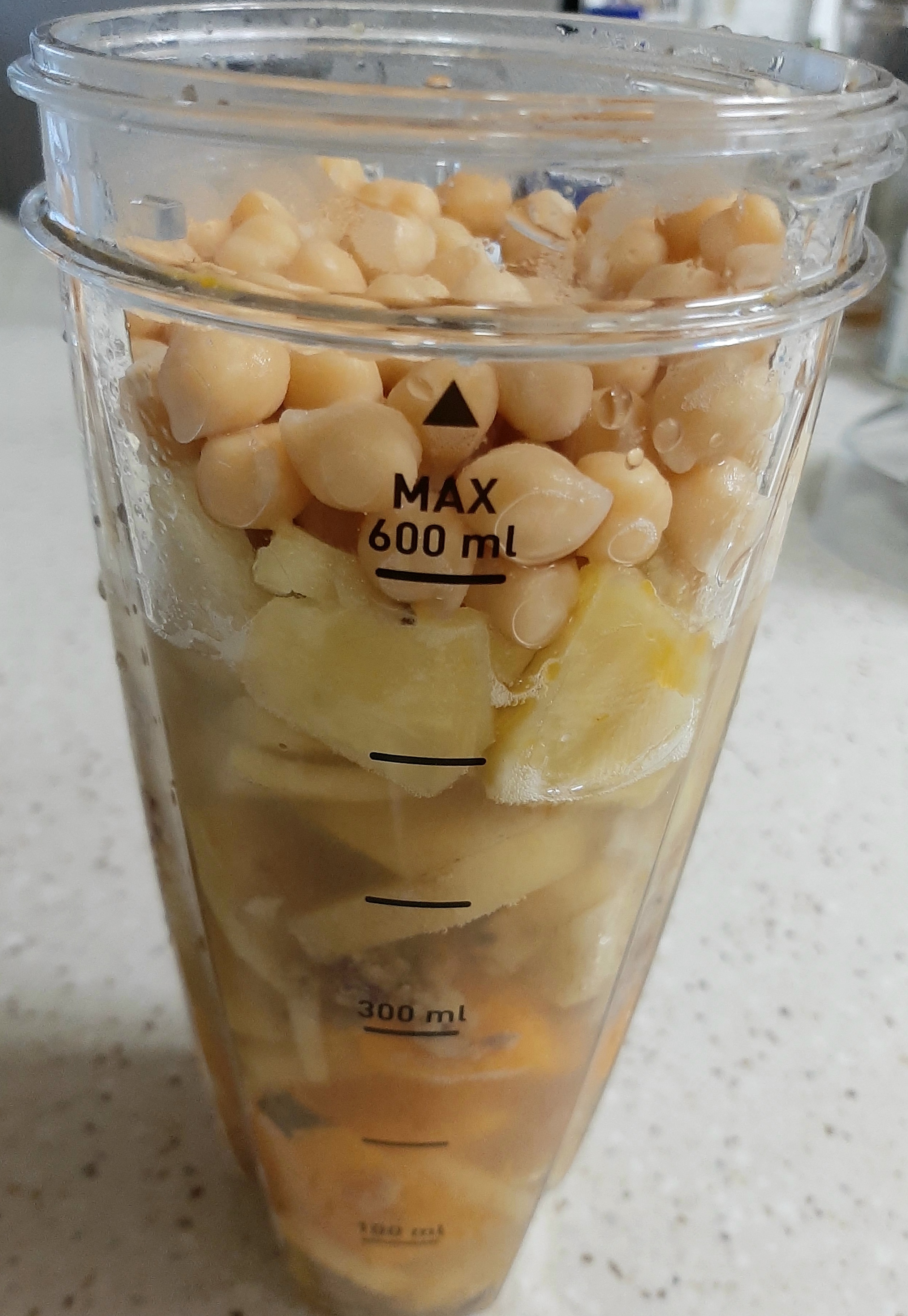 병아리콩,단호박,고구마,밤속살,물을 넣고 갈아요.