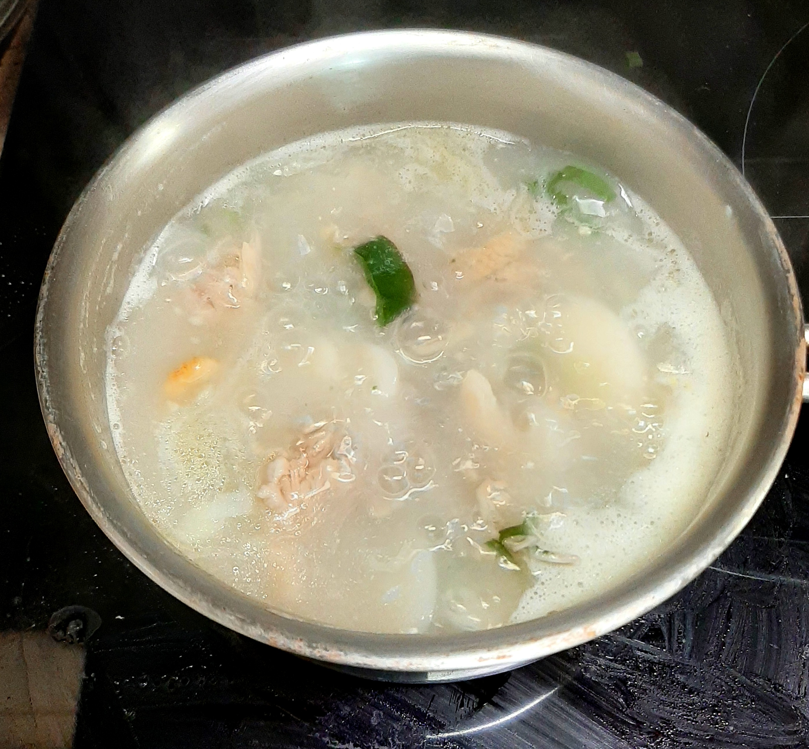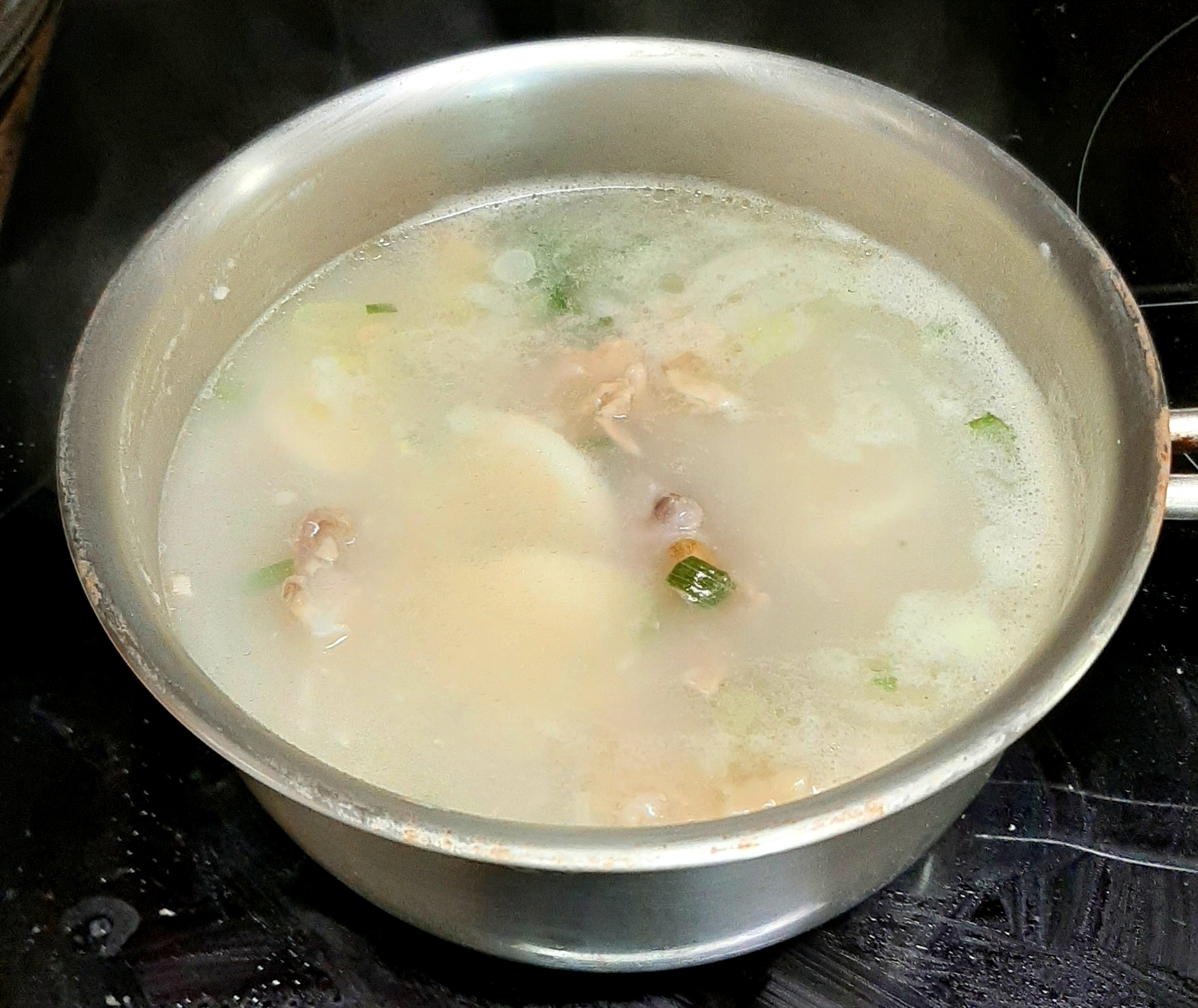 레시피로는 썰은 떡,닭다리 하나,건조한 인삼,간마늘,대파,소금,물입니다.^^