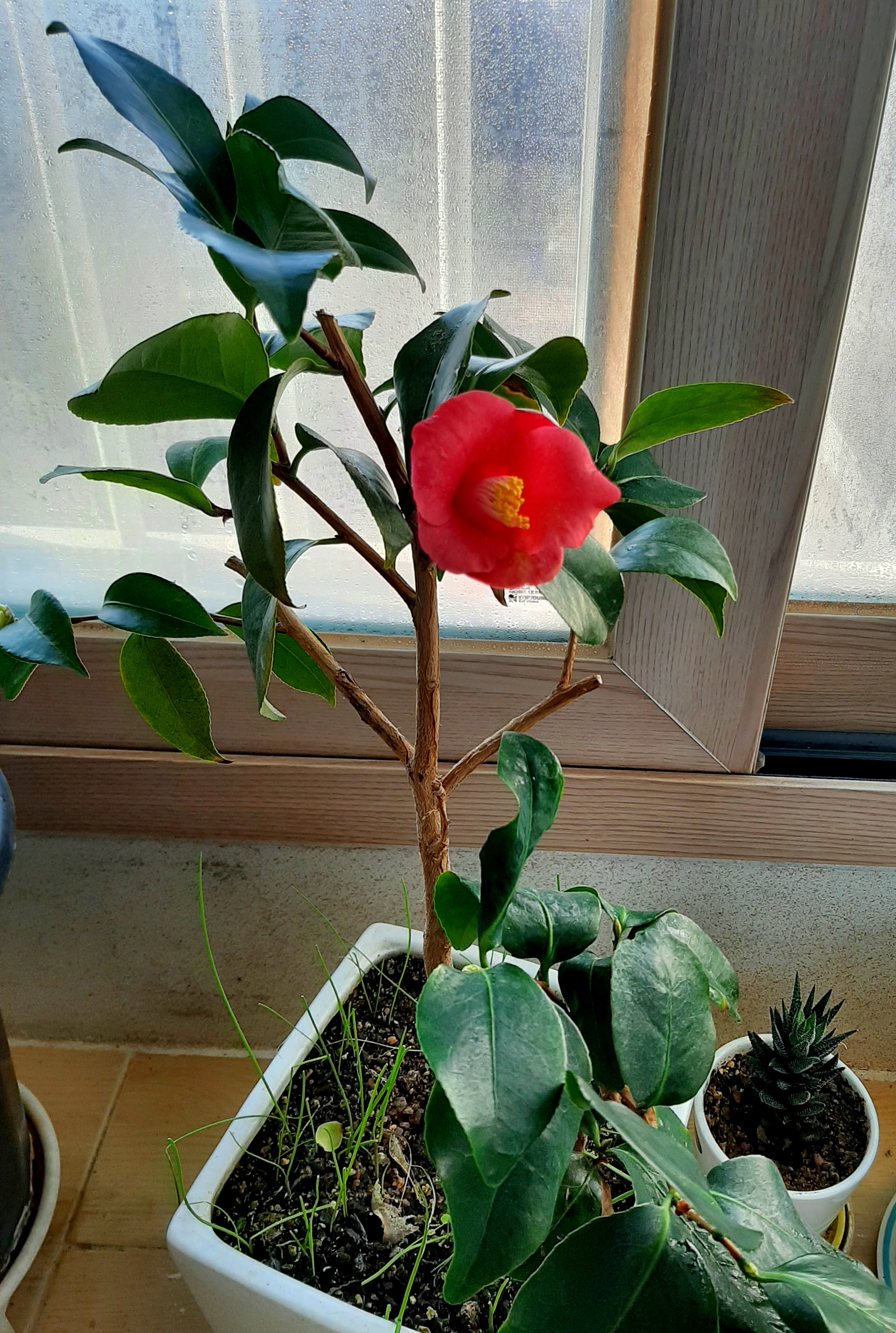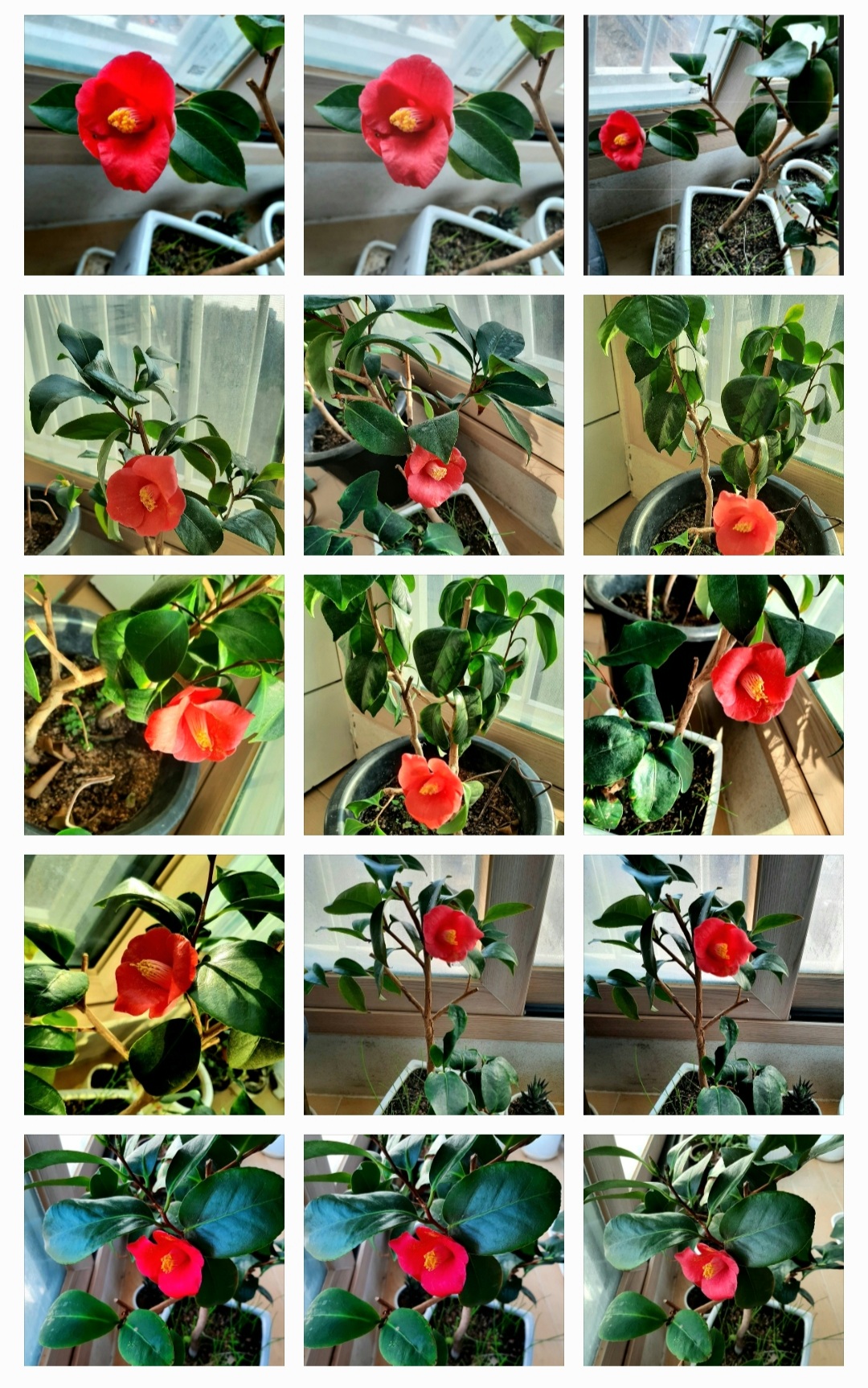 네 송이는 꽃이 바닦에 떨어져 있어 아쉬운 마음에 다른 가지에 임시로 꼽아 놓고 영상물로 남기고...