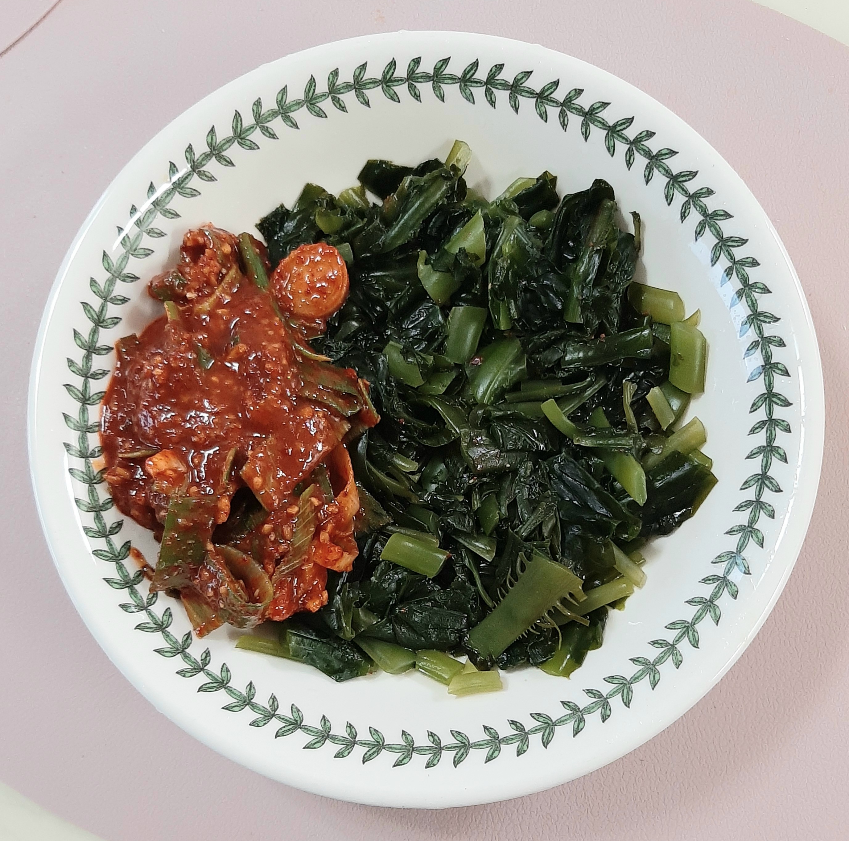 레시피와 약한 불에 데친 물미역