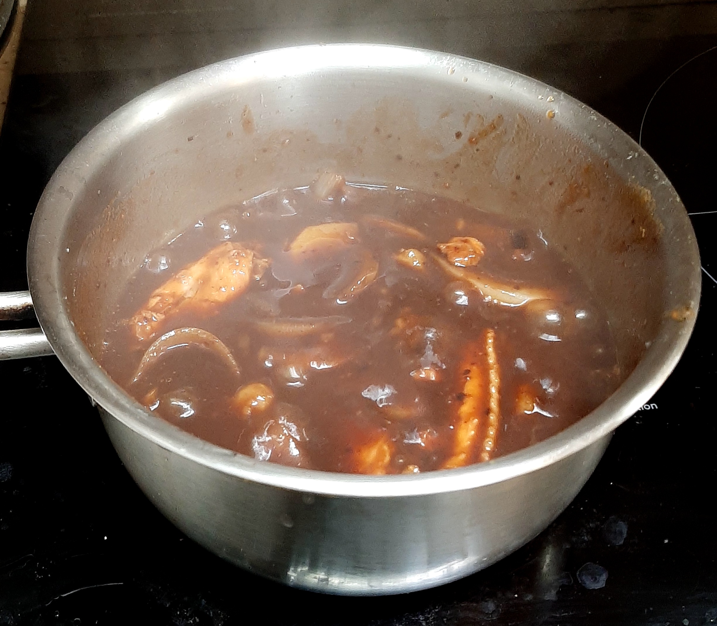 레시피로 닭윙, 짜장분말,감자,건조인삼,양파,생강술,물을 혼합하여 보글보글 끓여요.^^