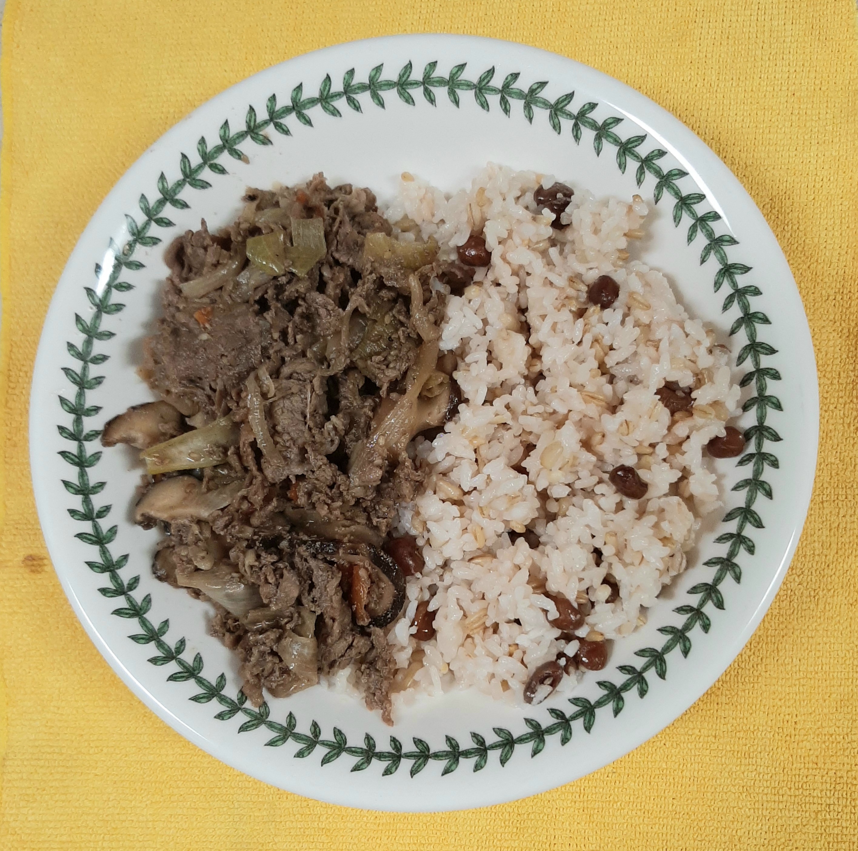 따뜻한 밥 위에 구운 소불고기를 올립니다.