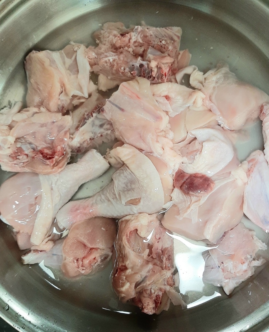 먼저 닭을 흐르는 물에 깨끗하게 씻어 준비합니다.