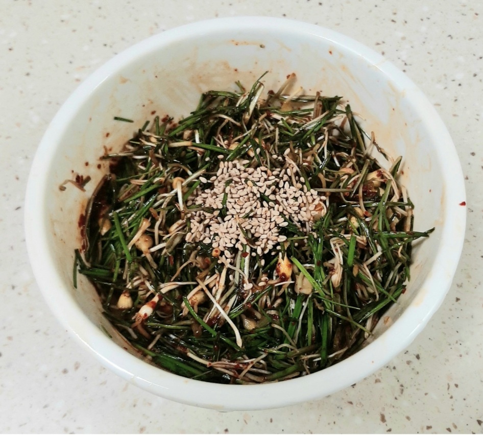 베란다 텃밭에서 겨울 동안 키운 달래는 향이 매우 진하고 신선합니다. 달래를 깨끗하게 손질해 간장, 들기름, 매실엑기스, 고추가루, 참깨, 간마늘 등을 넣어 달래간장을 만들어 두었습니다.